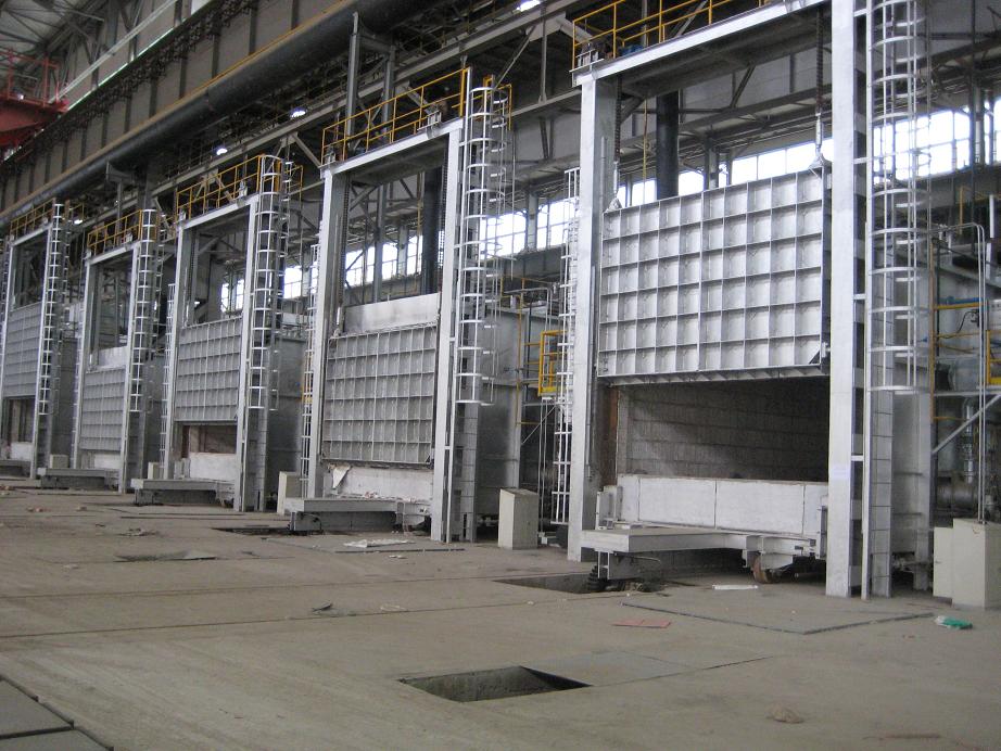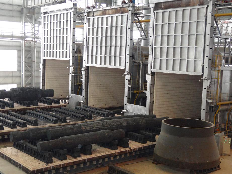鋁合金淬火爐適用于對大、中型鋁合金產(chǎn)品零部件的固溶熱處理及時效處理,由加熱爐罩和移動式底架組成的。方形(或圓形)爐罩頂裝有起重機(jī),通過鏈條和掛鉤可將料筐吊至爐膛。爐罩由型鋼支起,底部有氣動(或電動)操作的爐門。位于爐罩下方的底架可沿軌道移動、定位,底架上面載有淬火水槽和料筐等。